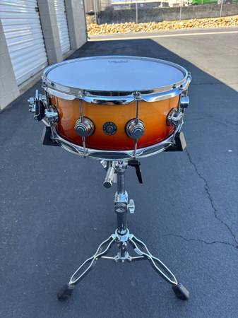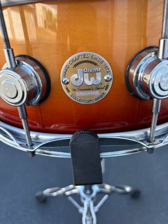 DW COLLECTOR SERIES 6x14 MAPLE SNARE DRUM. 6 and 6 WITH RERINGS . HAS MAG THROW OFF. CUSTOM LAQUER TOTONE COLOR. COMES WITH A HUMES AND BERG ENDURO PADDED SNARE CASE.