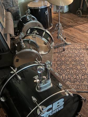 Black CB drum set. Belonged to my uncle who passed away don’t know how to set it up. No drumsticks.
