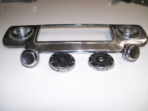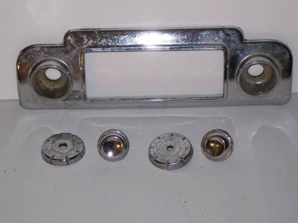 1948 Oldsmobile Radio Chrome Face Plate. With Knobs & backs. #418584 Asking $50.00 for them.