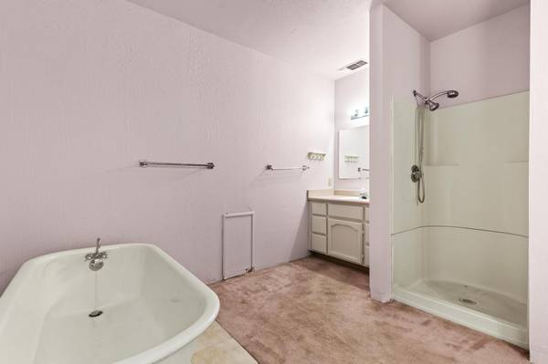 One of the standout features of this home is the upstairs primary suite, a private retreat that includes a classic clawfoot bathtub, a walk-in shower, a spacious walk-in closet, and direct access to a rooftop deck—an ideal space for morning coffee or evening relaxation under the stars.
