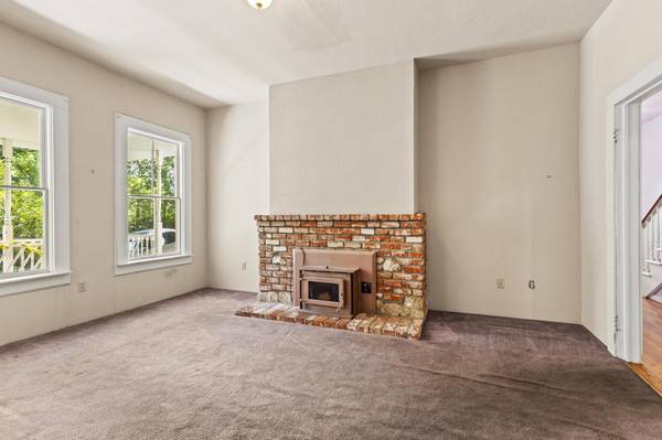 From the moment you arrive, the home's distinctive Victorian architecture and covered front porch welcome you with warmth and elegance. Inside, you'll discover high ceilings, intricate built-in features, and classic details that showcase the home’s vintage charm. The cozy fireplace with pellet stove insert anchors the living room, providing ambiance and warmth during cooler months.