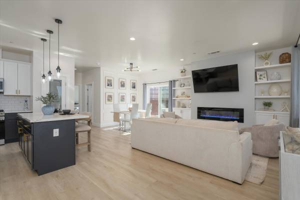 Welcome to a home that blends modern comfort with thoughtful design. This beautifully finished 2-bedroom, 2-bath residence offers an open, inviting layout perfect for everyday living. The impressive kitchen features soft-close cabinetry, a spacious pantry, a large island, and sleek quartz countertops, all flowing into a bright living area centered around a cozy electric fireplace. With 9 ft ceilings and durable LVP flooring throughout, the home feels open and cohesive. The oversized indoor laundry room with built-in cabinetry adds convenience you’ll truly appreciate. The primary suite is a relaxing retreat, offering a spacious layout, a custom walk-in closet, and a stylish bathroom with double sinks, quartz counters, and beautiful tile work. The secondary bedroom provides great natural light, a generous closet, and nearby access to a spacious guest bath designed with the same high-end finishes. An oversized two-car garage offers abundant storage, while the exterior of the property is just as appealing. Enjoy a welcoming covered front porch, large front and side yards, room for RV or boat parking, fenced areas, and a back patio perfect for relaxing or entertaining. Practical upgrades include underground drainage, a sliding glass door to the yard, owned solar, and a brand-new septic system, offering peace of mind for years to come. This home delivers quality, comfort, and modern style—ready for you to move in and enjoy.