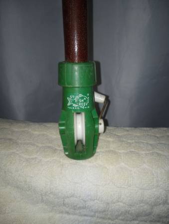 Telescopic fishing pole extents 12 feet 3 inches Sears and Robuck and fishing Reel is made by Still Fish Reel in Toledo, Ohio.