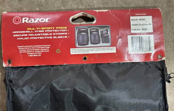 Brand new, never taken out of its original packaging. Includes elbow pads, knee pads and wrist guards.