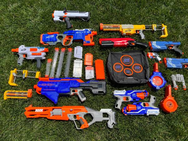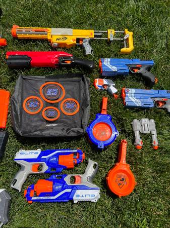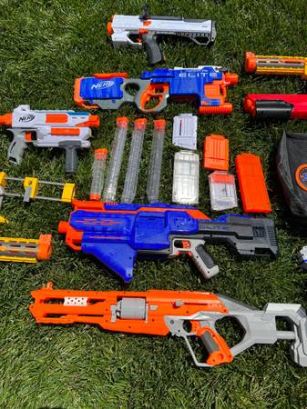 Huge nerve gun collection in working condition. Several of the Nerf guns were $100 new. $135 for all. Will not split up the nerf guns and ammunition.