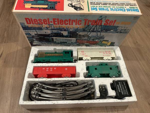 Excellent pre-owned condition. A complete set of- nothing else to buy. Featuring: Diesel Switcher Locomotive, Gondola, Refrigerator Car & Caboose. Model 7215. Includes a remote control 25-watt...