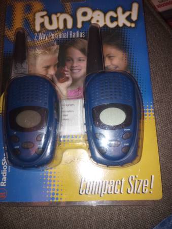 New, in package. Each radio requires 3 AAA batteries, not included.