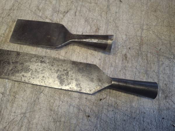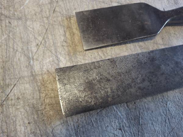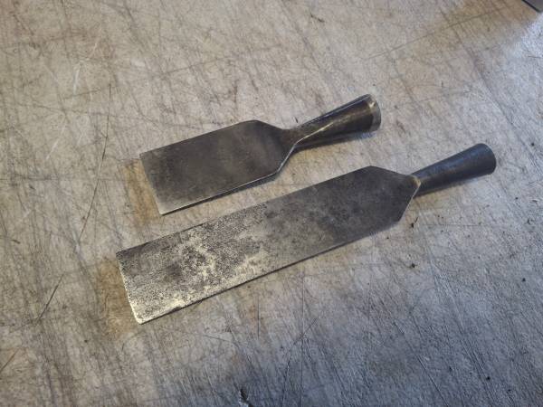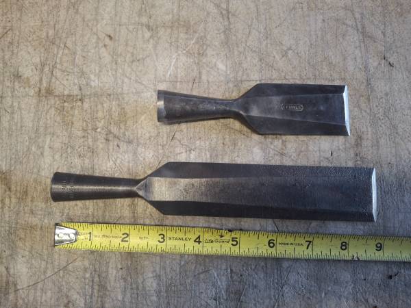 2 Vintage Stanley 1 1/2 inch beveled wood working chisels