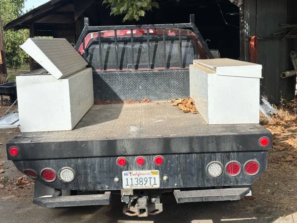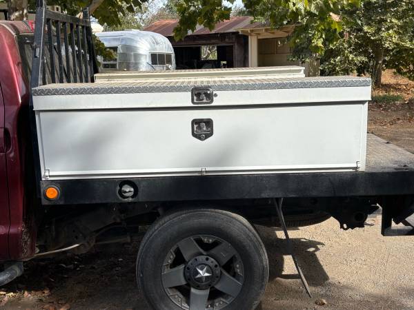 Two aluminum tool boxes for a flatbed truck; white; locking; Scelzi brand; 6-ft long, 20 1/2 inches high, 18 inches wide