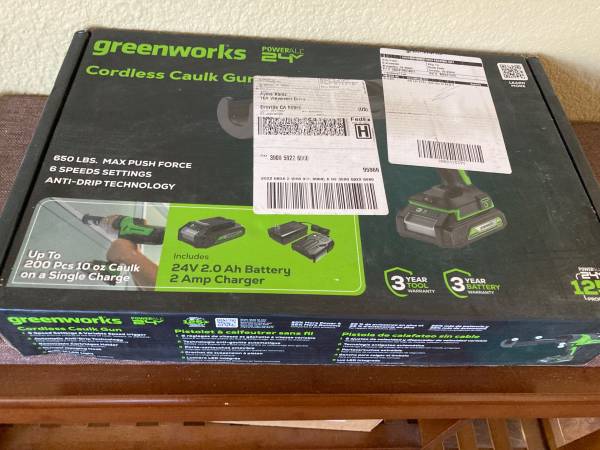 I have an unused, new-in-the-box 24v Cordless Caulk Gun with battery and charger from Greenworks Tools. I thought we were going to need it, and now we don't.