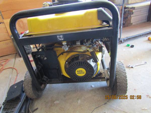 Champion 7500 watt Gas Generator for sale. Runs Great. New Battery. Model #100813. THIS IS AVAILABLE AT MY HUGE ESTATE SALE. COME AND LOOK AT ALL THE OTHER ITEMS I HAVE FOR SALE.