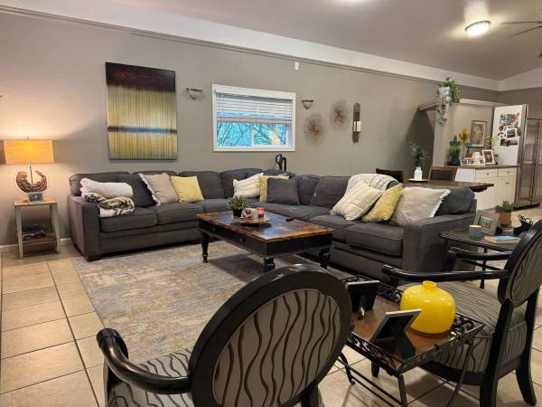 Very large 2 to 3 bedroom home. The house is one of 3 on a gated lot near Bidwell Park. 2000 sq ft furnished rental available for long or short term. Close to the freeway and only a block away from Bidwell Park but you feel like you far from town, the property has many large Redwood Trees and a very private feel. The living room and kitchen are very large, there is a covered front porch, 2 large bedrooms plus a very large room in the back that can be used as an extra bedroom if needed. Pets considered. PGE and Internet included. We are flexible on proof of income and credit. No application fee. Text Only Plz